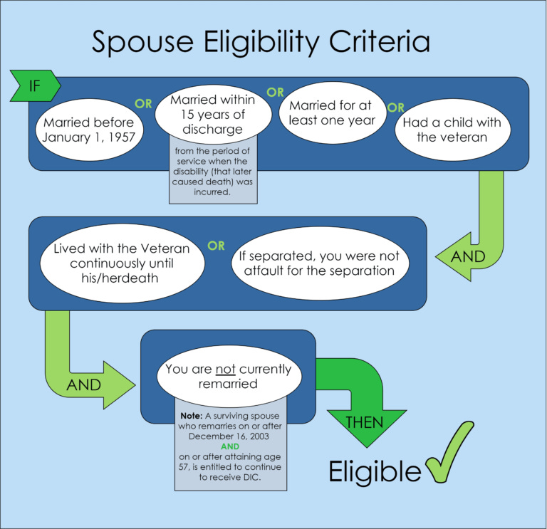 Must be married to the veteran or a dependent child or parent at the time of the veteran’s death, and